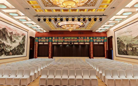 文昌閣,是會議(yì)區最大(dà)的會議(yì)室。文昌閣可(kě)以容納300人(rén),可(kě)以同聲傳遞四國(guó)語言,各種現代化的會議(yì)設施一應俱全。兩邊的國(guó)畫(huà)一幅是畫(huà)家呂元忠畫(huà)的承德金山(shān)嶺長城(chéng)。另一幅是呂元忠和丁福林合作(zuò)畫(huà)的承德木蘭圍場風(fēng)光(guāng)。 賞雙塔之奇、享帝王之尊,熱(rè)情好客的行宮人(rén)會爲來(lái)到這裡(lǐ)的每一位尊貴客人(rén)提供溫馨細微的服務。